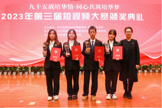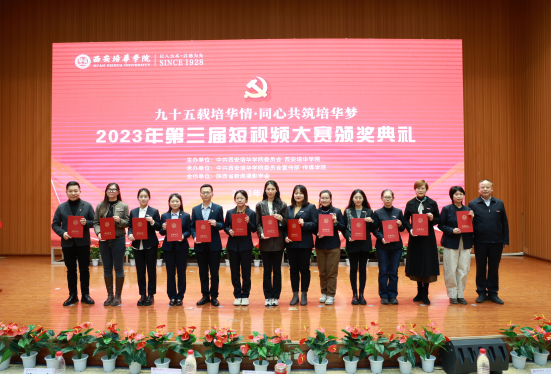 12月6日,由中共西安培华学院委员会、西安培华学院主办,中共西安培华学院委员会宣传部、传媒学院承办,陕西省新闻摄影学会共同举办的“九十五载培华情 同心共筑培华梦”西安培华学院2023年第三届短视频大赛颁奖典礼暨传媒学院专家委员会委员聘任仪式在维之图书馆三楼学术报告厅举行。西安培华学院理事长姜波,党委书记罗新远,副校长、党委副书记姚文静出席,各职能部门负责人,各二级学院党委书记、副书记及师生代表400余人参加了本次活动。活动由传媒学院播音系教师甘辉杰、刘丽莹主持。