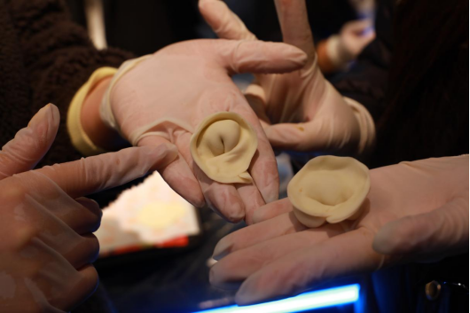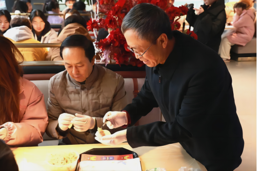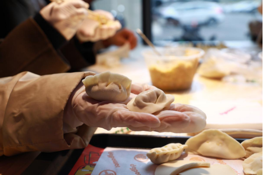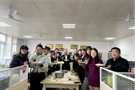 人文与国际教育学院的师生,欢欢喜喜吃饺子,迎冬至,“保护”自己的耳朵。
