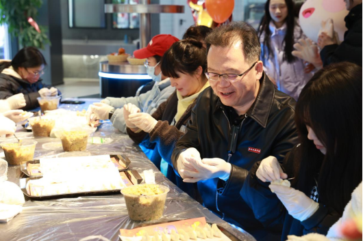 姜波理事长说:冬至吃饺子是中华传统习俗,同时也象征着幸福与团圆。今天跟大家一起包饺子,是一件幸福的事,也希望在座的老师、同学们,在培华都能感受到家的温暖。