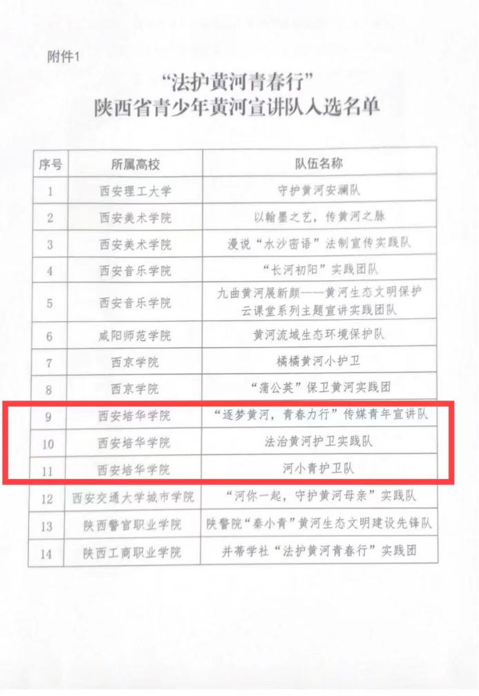 近日,团省委青年社会事业部发布了《关于开展宣讲黄河保护法暨生态文明实践活动的工作提示》,经各高校推荐申报,团省委遴选了13支“法护黄河青春行”陕西省青少年黄河宣讲队。其中,西安培华学院“逐梦黄河,青春力行”传媒青年宣讲队、法治黄河护卫实践队、河小青护卫队3支队伍入选。