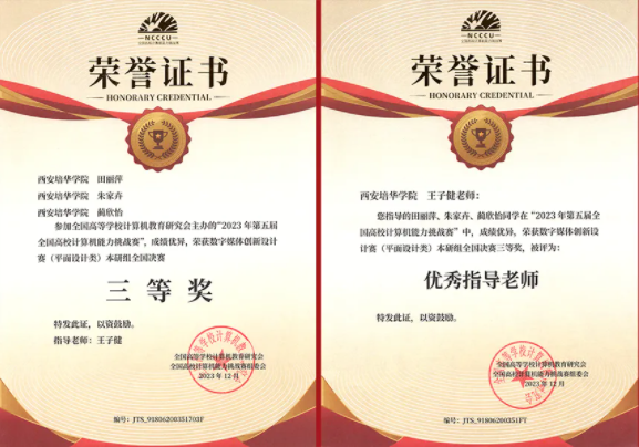 近日,由全国高等学校计算机教育研究会主办的第五届全国高校计算机能力挑战赛(NCCCU)获奖名单公布。西安培华学院设计创新中心在本次大赛中表现优异,共获得全国三等奖1项、西北赛区二等奖1项、西北赛区三等奖1项和“优秀指导教师”3项。