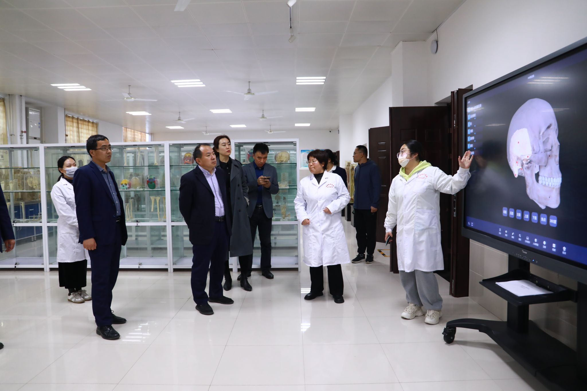 会后,李健主任陪同青岛黄海学院副校长梁忠环一行参观了校史馆、再生医学与精准免疫健康中心、恒友楼、省级医学实验教学中心及“一带一路”供应链金融研究院。