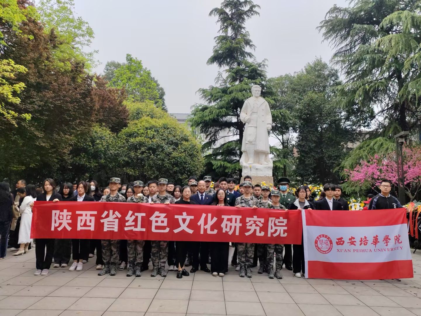 4月4日,西安各界人士齐聚西安革命公园刘志丹烈士雕像广场,举行“清明追思祭英烈 红色基因永传承”活动。西安培华学院副校长罗新远、陕西省红色文化研究院副院长潘迎丽等师生代表参加了纪念活动。