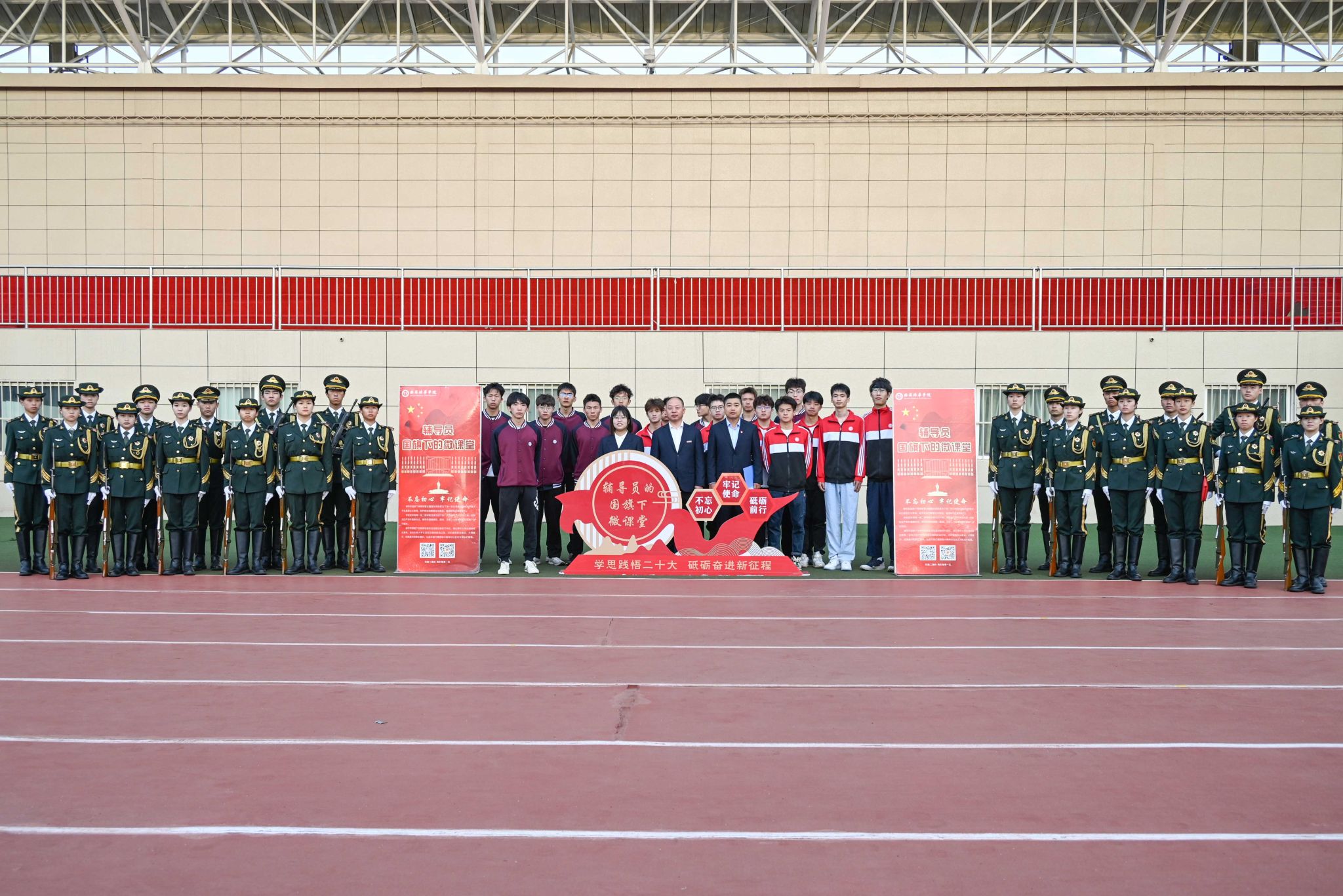 西安培华学院国旗护卫队举行了庄严的升国旗仪式,体育学院辅导员老师冯鑫、杜晓婷,医学院党委书记兼行政副院长史立军分别作主题发言,鼓励当代中国青年勇担重任,用个人力量筑起国家安全的坚实堤坝,在披荆斩棘中勇毅前进。