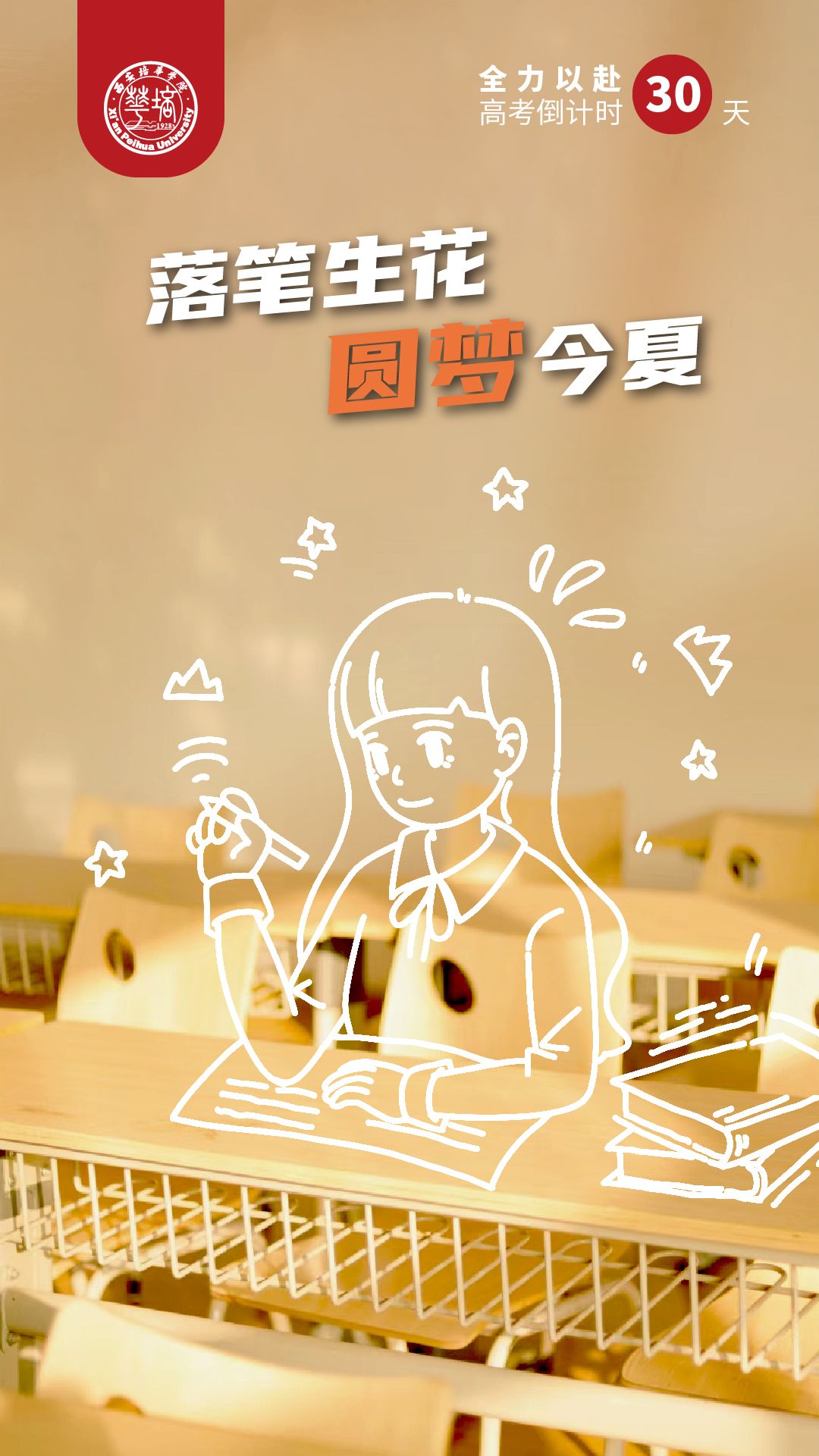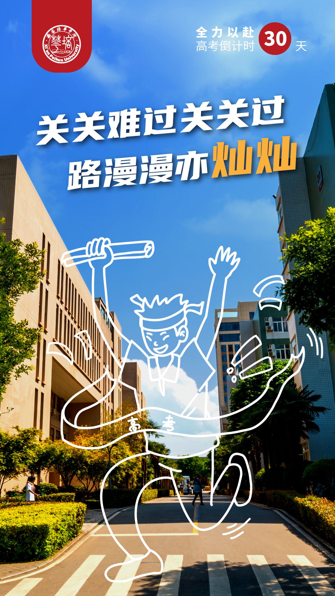 高考的脚步渐近,倒计时30天,相信自己,勇敢追逐梦想的每一个脚印。坚持,将化作通往成功的阶梯,努力,将铸就辉煌的明天,愿我们在这个夏天用汗水浇灌希望,用智慧点亮未来。加油,高考学子们,愿我们都能赢在夏天,赢在人生的每一个阶段!