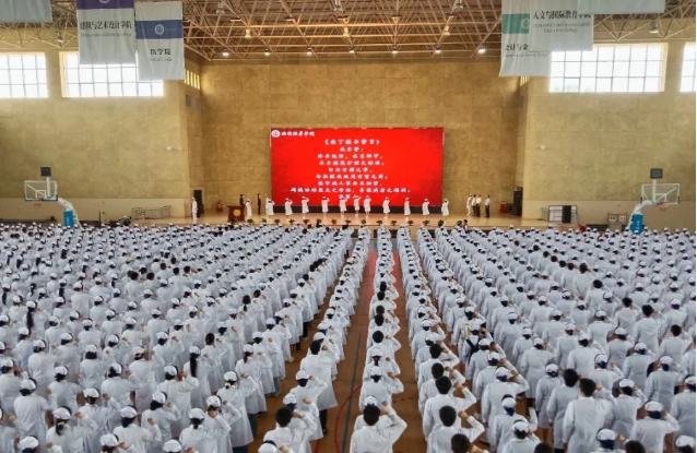 护理学专业带头人化前珍教授带领千名准护士高举右拳共誓《南丁格尔誓言》,以《感恩的心》手语操致敬生命,彰显爱心与责任。他们始终以“端正训练作风、磨炼战斗意识、锤炼不磨精神”为座右铭,为医疗事业贡献力量,共同守护生命之光。
