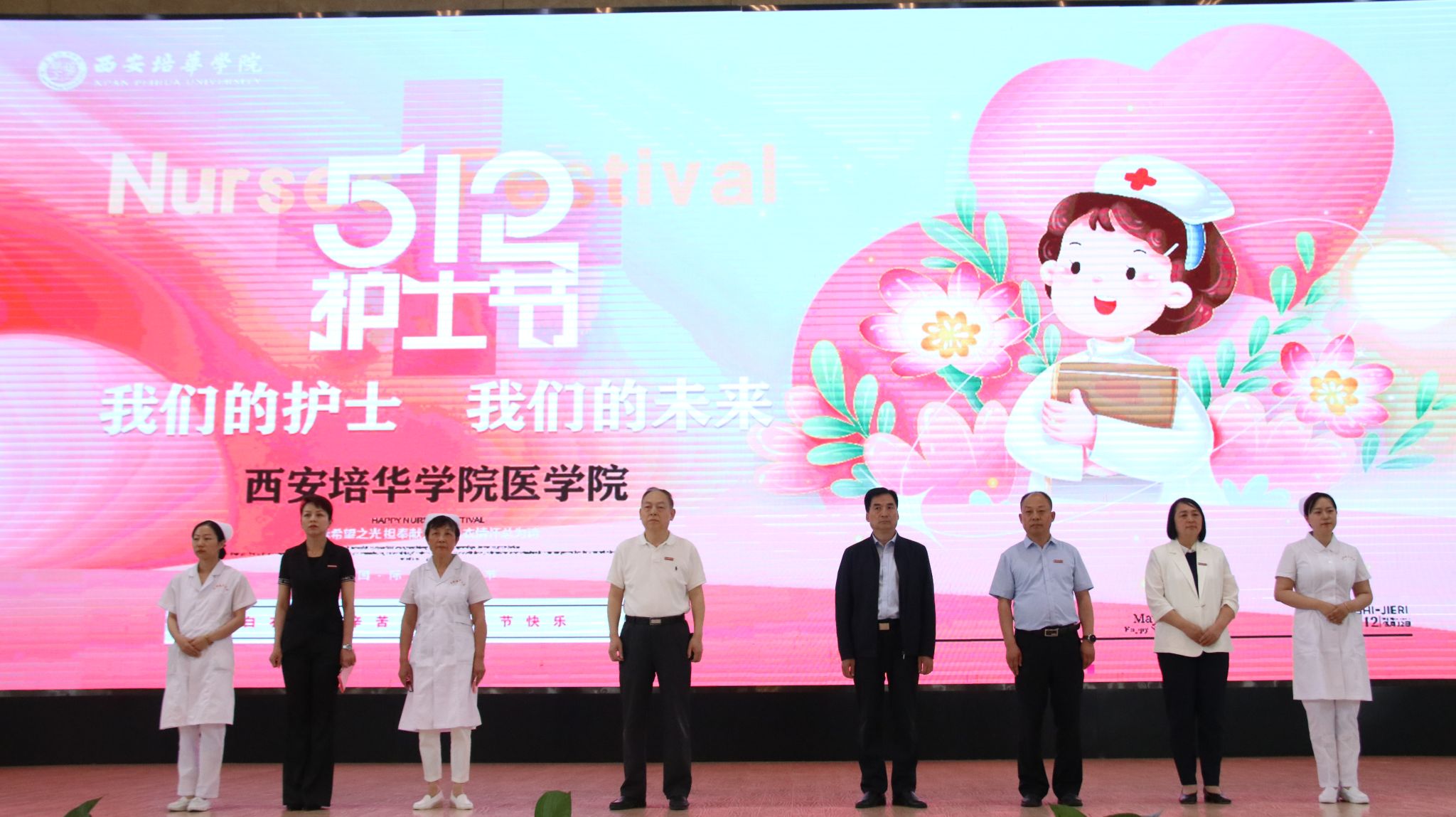 在第113个“512”国际护士节来临之际,学校在体育馆举办了我们的护士我们的未来——2024年“512”国际护士节主题活动。西安培华学院副校长兼医学院院长于国亮、医学院常务副院长扈国栋、医学院党委书记兼行政副院长史立军等师生代表出席活动。