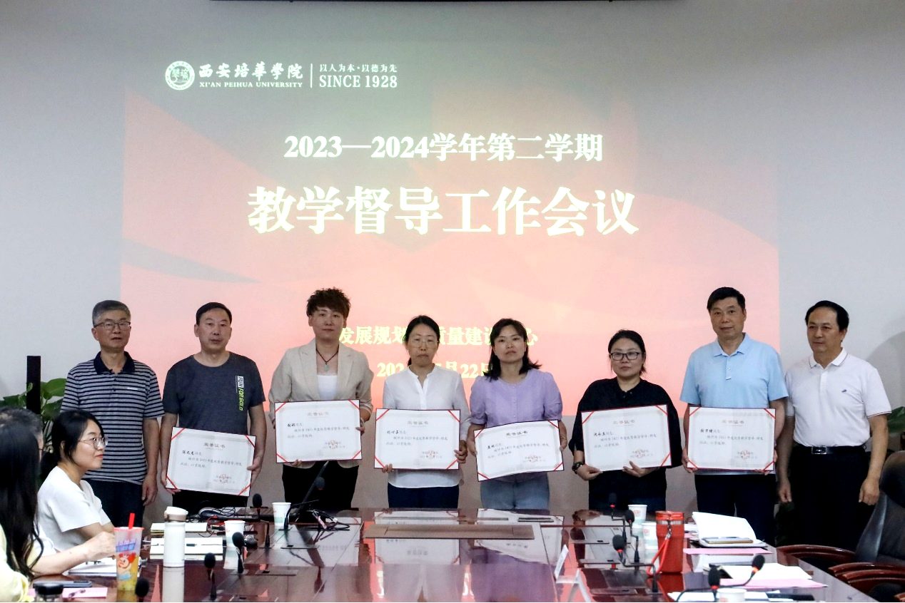 校领导为“2023年度优秀教学督导”颁发了荣誉证书,表彰他们在教学督导工作中的杰出贡献。