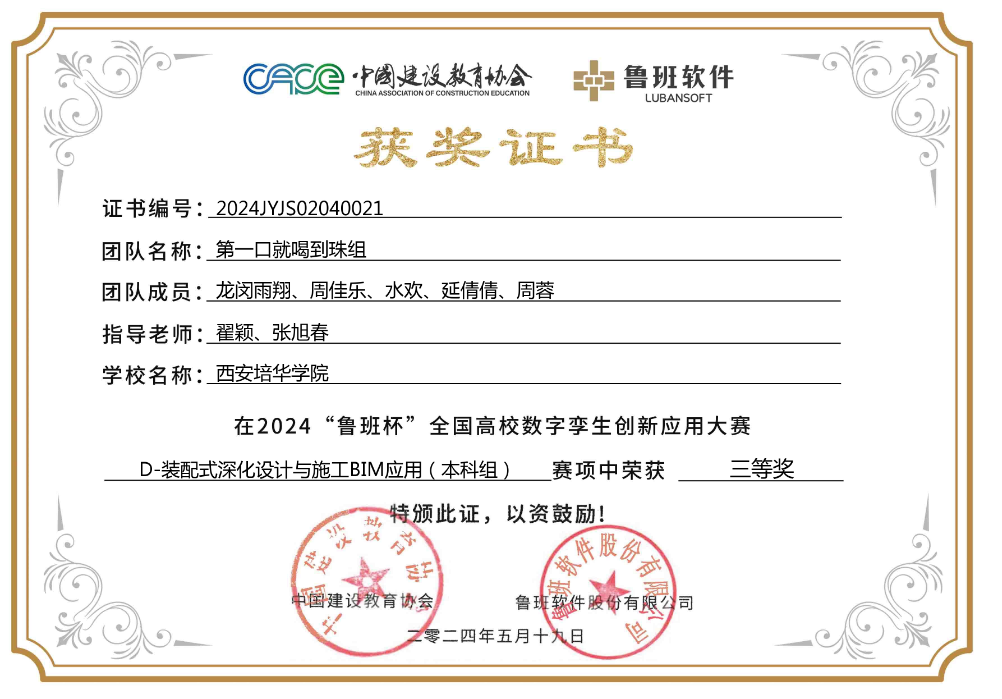 装配式深化设计与施工BIM应用赛项团队三等奖