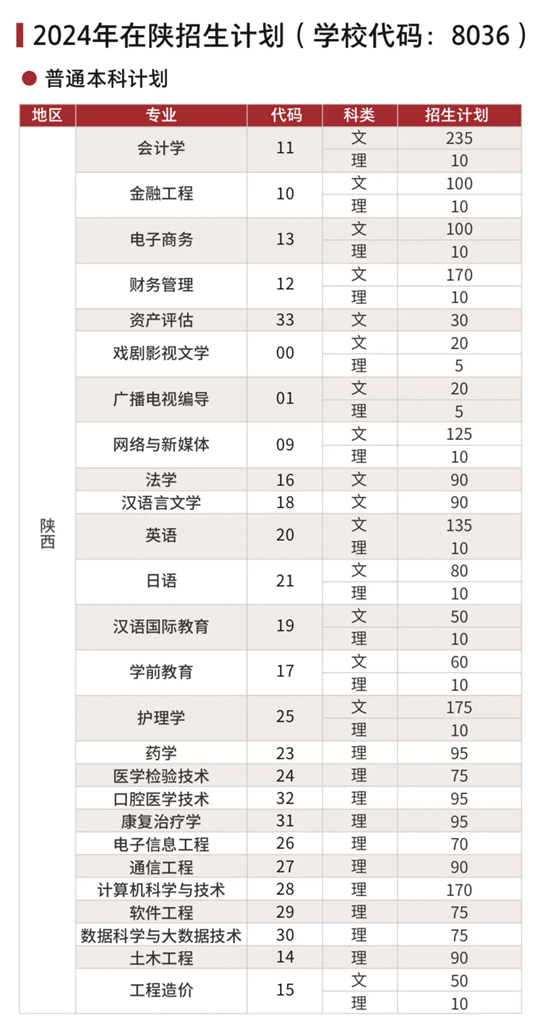 2024年学校在陕具体招生计划如下