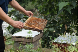 志愿服务期间,志愿者们还在龙王镇镇委的安排下踏入了养蚕基地和养蜂基地。在这里,他们见到了忙碌而有序的养蚕场景和养蜂场景,亲身感受乡村产业发展的勃勃生机,亲身体验农村产业发展的生动实践。在养蚕人的指导下,志愿者们迅速投入到了挑老蚕的工作中。虽然这项工作看似简单,实则需要耐心与细心。志愿者们一丝不苟地挑选着老蚕,与养蚕人共同协作,确保蚕茧的质量与产量。养蜂师傅也为志愿者耐心讲解蜜蜂的生活习性、采蜜过程以及蜂蜜的酿造原理等专业知识。