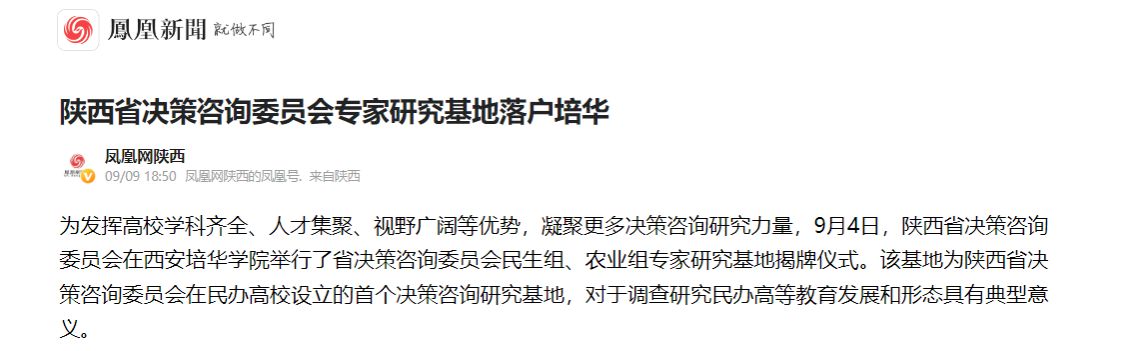 为发挥高校学科齐全、人才集聚、视野广阔等优势,凝聚更多决策咨询研究力量,9月4日,陕西省决策咨询委员会在西安培华学院举行了省决策咨询委员会民生组、农业组专家研究基地揭牌仪式。该基地为陕西省决策咨询委员会在民办高校设立的首个决策咨询研究基地,对于调查研究民办高等教育发展和形态具有典型意义。