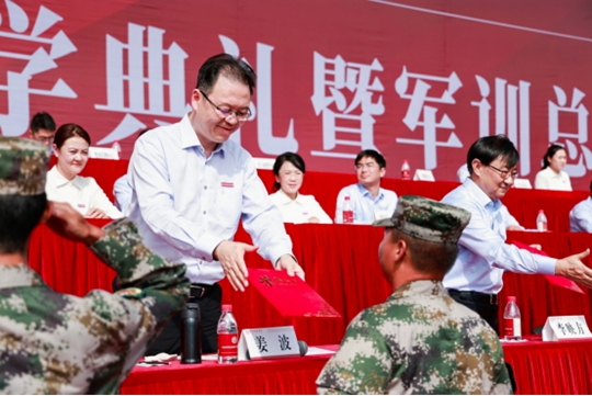 青春无悔献国防,言传身教育栋梁。2024年学校继续从大学生退役士兵中挑选优秀学生组建教官团队,开展学生军训工作。他们从同学中来,又回到同学中去,既发挥着“青春榜样”和“朋辈示范”引领作用,又以过硬的军事素养、宝贵的精神品格、严密的组织能力、饱满的工作热情,确保了军训工作的顺利开展。党委书记刘锋向军训团颁发锦旗,以示嘉奖。