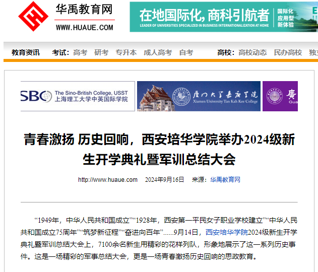 “1949年,中华人民共和国成立”“1928年,西安第一平民女子职业学校建立”“中华人民共和国成立75周年”“筑梦新征程”“奋进向百年”......9月14日,西安培华学院2024级新生开学典礼暨军训总结大会上,7100余名新生用精彩的花样列队,形象地展示了这一系列历史事件。这是一场精彩的军事总结大会,更是一场青春激扬历史回响的思政教育。