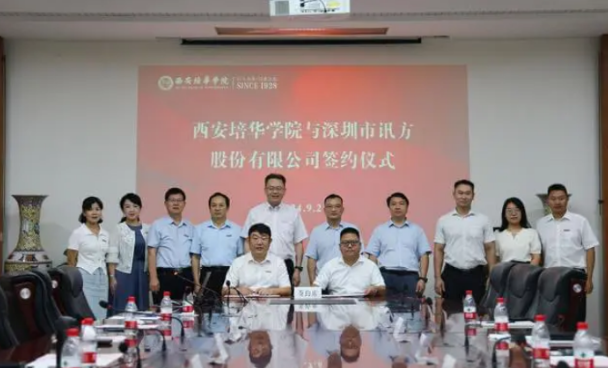 9月2日上午,西安培华学院与深圳市讯方技术股份有限公司校企合作签约仪式在培华长安校区举行。该公司董事长戴毅、执行副总裁刘铭皓、校企合作中心总监林晨、北部片区总经理杜红奎及陕西教育业务代表王姗姗,西安培华学院理事长姜波、校长助理兼智能科学与工程学院院长张运良、校长助理鲍伟、合作发展中心主任柳雨以及智能科学与工程学院常务副院长成立、毛莉君等参加仪式。常务副校长胡俊生主持仪式。