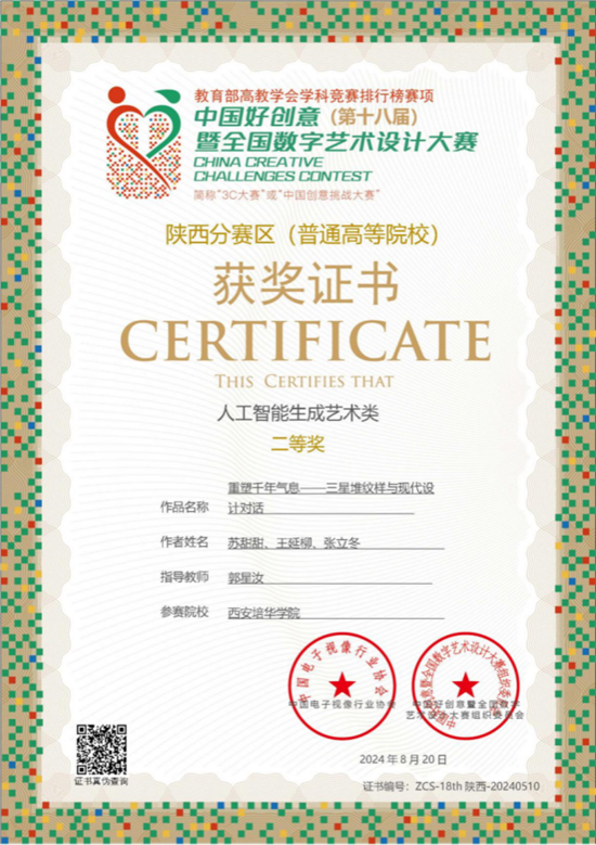 近日,第18届中国好创意暨全国数字艺术设计大赛评审结果公布。西安培华学院师生团队成绩喜人,共计获得奖项15项,其中国赛二等奖2项,国赛三等奖2项,省赛一等奖1项,省赛二等奖4项,省赛三等奖6项。