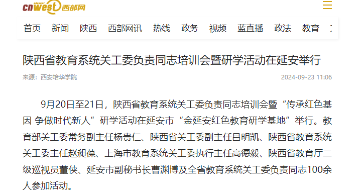 陕西省教育系统关工委负责同志培训会暨研学活动在延安举行