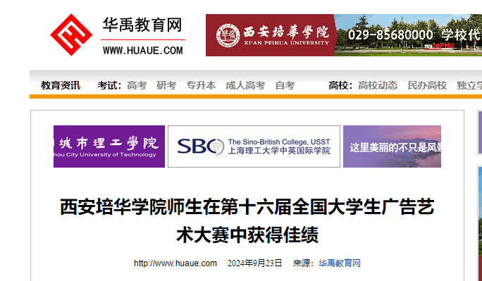近日,第16届全国大学生广告艺术大赛已顺利结束,本届大广赛陕西赛区参赛作品由各参赛院校进行筛选后,最终报陕西赛区组委会参评作品7265件。其中,西安培华学院传媒与设计学院报送作品146件,获奖71项。荣获国家级三等奖2项,国家级优秀奖2项,陕西省赛区一等奖10项、二等奖14项,三等奖15项,优秀奖28项。西安培华学院荣获“优秀院校奖”,童瑾获“优秀组织工作者”,王卓、张琨、韩旭、曲少为、张荣花、房宁、刘妙、李昕萌、邱晓波、曲少为、郑晓利、吴兰兰、张晓露、尚勇获得“优秀指导教师”称号。