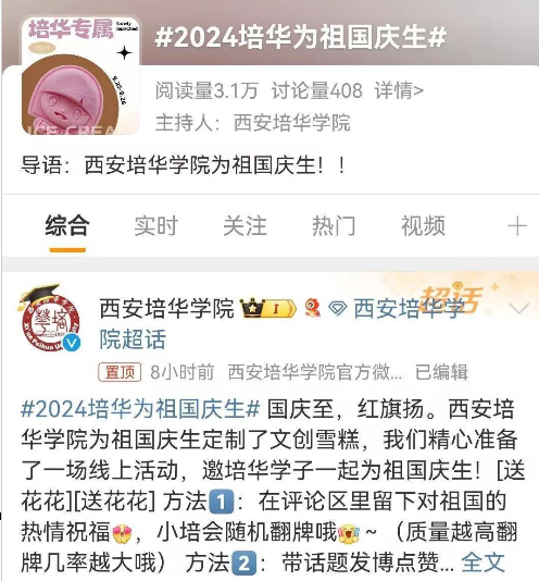 活动现场,各位PHer积极在微博参与话题#2024培华为祖国庆生并@西安培华学院,打卡体验套色印章,趣味十足。