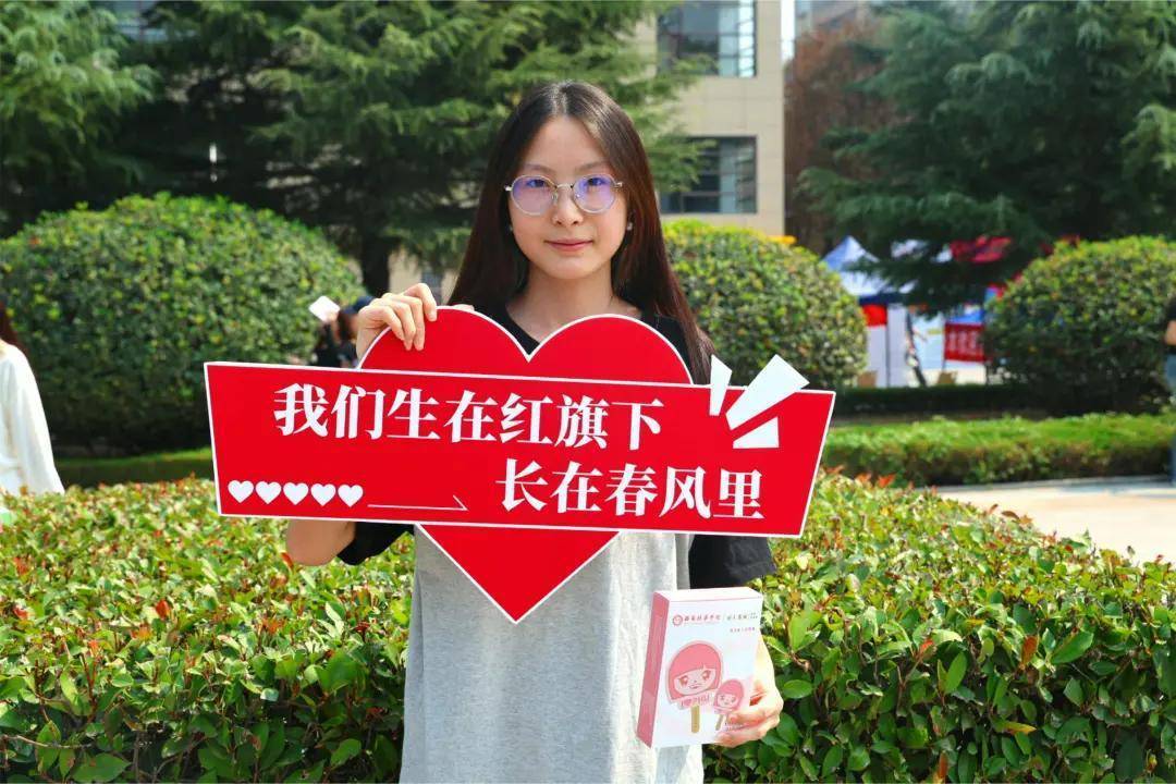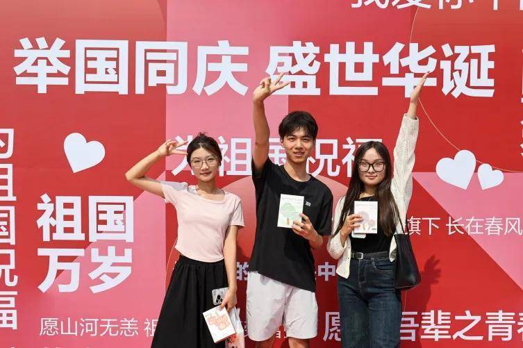学生们排起了长龙,个个脸上洋溢着幸福的笑容,祝福着祖国母亲生日快乐,营造出浓浓的爱国情怀和温馨的氛围。