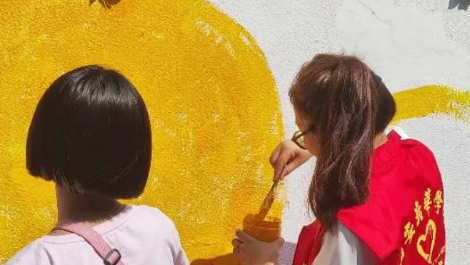 ——代际互动,共绘法治与爱的美好图景。墙绘文化传播健康文明正能量,是推进社区、乡村文化振兴的有效载体。此次活动,不仅是一场跨学科、跨领域的合作盛宴,更是一次代际间心灵与智慧的碰撞。西安培华学院设计专业的学生们以“大手拉小手、助力共成长”为主题,与社区的高中生志愿者、小朋友们携手并肩,共同参与了墙绘的创作过程。在“大手拉小手”的温馨氛围中,他们围坐一起,通过讲故事、画人物的方式,相互学习、相互交流,打造了一种零距离、多趣味的普法宣讲课堂模式,共同为未成年人保护法的宣传贡献着自己的力量。