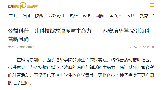 为了践行“弘扬科学家精神,激发全社会创新活力”的使命,西安培华学院积极参与并组织了一系列群众性科普活动。