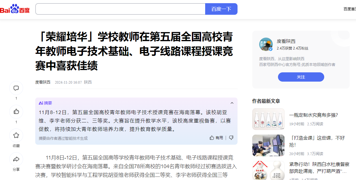 本次大赛旨在提升青年教师电子技术基础与电子线路课程的教学水平,推动课程体系的改革与创新,进一步激发教师投入课程建设和教学研究的热情。开赛以来,西安培华学院高度重视备赛工作,积极组织专家围绕参赛内容进行研讨打磨,参赛教师认真备赛、团结协作、相互借鉴,不断完善授课作品,最终凭借扎实的教学基本功、先进的教育理念和创新的教学方法,获得大赛评委的一致好评,荣获全国二等奖、三等奖。