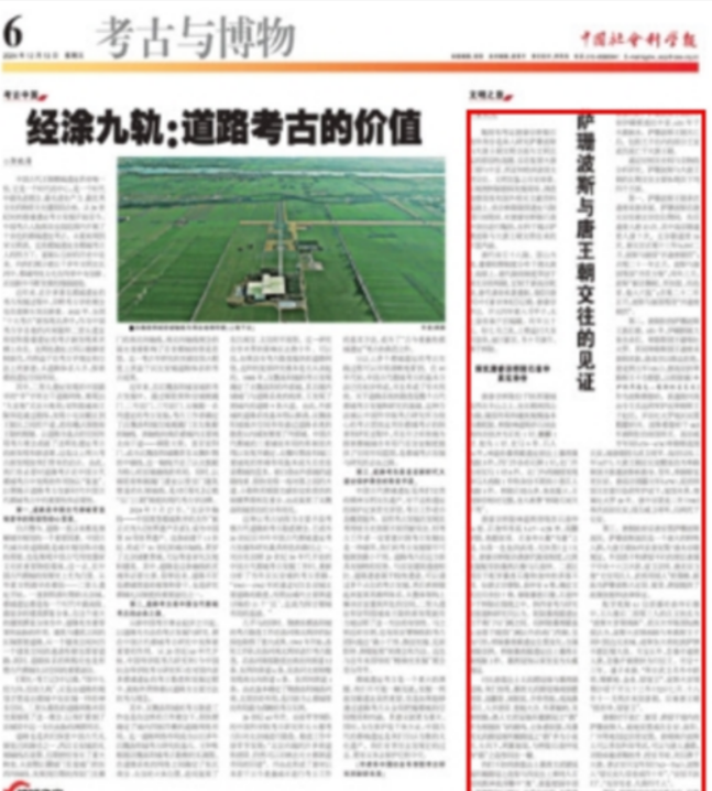 12月13日,学校科研管理中心副主任朱利民的历史考古理论文章《萨珊波斯与唐王朝交往的见证》在《中国社会科学报》第3035期A06版“考古与博物”专版通栏发表(文章系国家社科基金项目“唐代胡人都市生活研究”21XKG004阶段性成果)。这是培华历史考古成果首次在该权威学术报刊亮相。