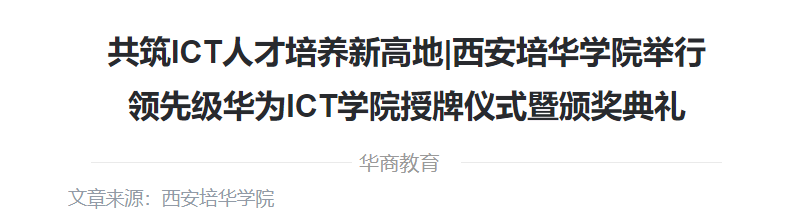 授牌仪式上,华为技术有限公司将领先级华为ICT学院牌匾授予西安培华学院,标志着西安培华学院华为ICT学院建设跃上新台阶。