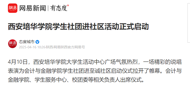 4月10日,西安培华学院大学生活动中心广场气氛热烈,一场精彩的说唱表演为会计与金融学院学生社团进至诚社区启动仪式拉开了帷幕。会计与金融学院、学生服务中心、校团委等相关负责人出席仪式。