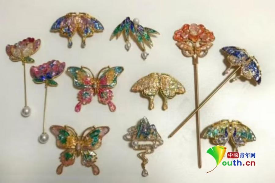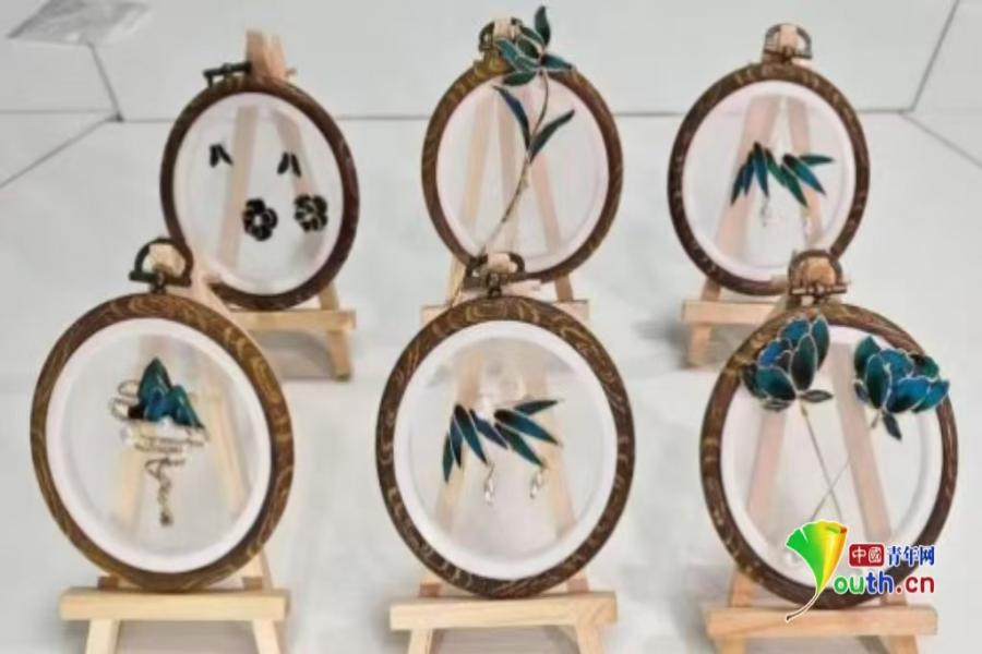 点翠饰品制作。西安培华学院供图