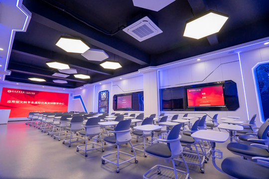 汉语国际教育专业紧跟社会发展前沿,紧贴市场用人需求,注重校企合作与真实场景教学,让学生在真学、真做过程中练就真本领。汉语国际教育专业与西安超星教育科技有限公司等企业共建“国际中文VR虚拟仿真实验室”,开设《AI课件开发》《跨文化数据分析》等课程。学生通过VR中文课堂、多语种语音评测系统等工具,掌握智能教学技能。虚拟仿真实验室覆盖智能教学、跨境直播、文化IP孵化等实训内容,部分学生已参与泰国、柬埔寨孔子学院云端实习项目,运用AI技术辅助中文教学。