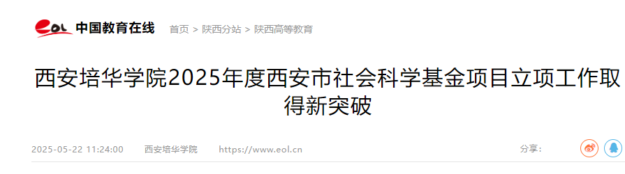 近日,西安市社会科学规划基金管理办公室发布2025年度市社会科学基金项目立项的相关通知,西安培华学院取得历史突破,共计9个项目获批立项(其中1项重点、8项一般),立项率达到45%,立项含金量位居全省民办院校前三,其中历史学、新闻与传播学、法学与社会学、经济学等关键学科均以创新性研究得到评委认可。