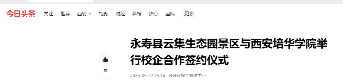 为深化校企合作,推动产教融合,前不久,云集生态园与西安培华学院校企合作签约仪式在云集生态园蓝溪书院举行。双方将围绕人才培养、实习实训、实践教学、师资交流、就业创业等领域展开深度合作,共同探索“产教融合、协同育人”的新模式。