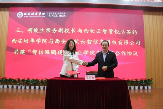 学院坚持以市场需求为导向、以学生应用能力及岗位就业能力培养为核心,积极探索并实施产学研一体化的培养模式。获批领先级华为ICT学院,与华为技术有限公司、讯方技术有限公司、华夏鲲鹏科技有限公司、中煤航测遥感集团、西部云谷等知名企业开展深入合作,共同打造校企合作、协同育人的机制与平台,共建专业、团队以及教学条件,并实施职业教育, 形成了优势互补、合作办学、协同育人、按需定制培养以及零适应期就业的人才培养特点,为通信、电子、计算机以及建筑类等领域输送亟需的应用技术型人才。
