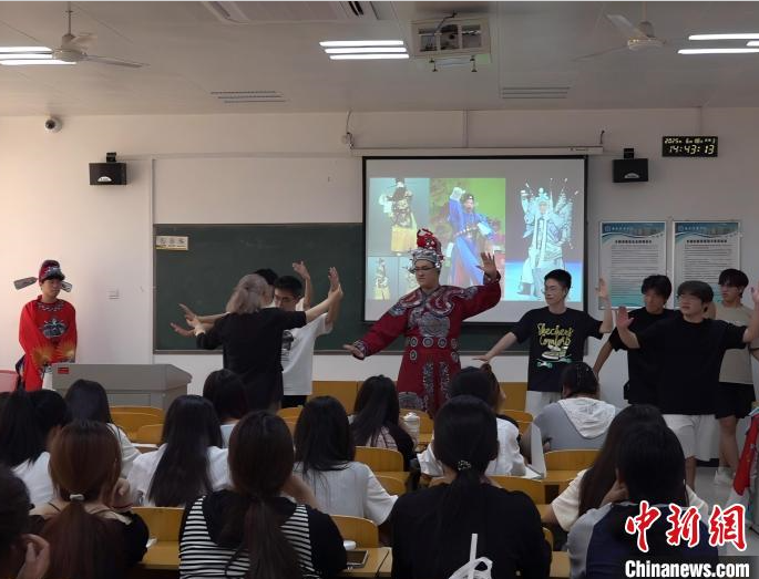 西安6月21日电 (梅镱泷 张桐若)近日,在西安培华学院教学楼内,一堂别开生面的“浸润式”戏曲鉴赏课正在进行。“课堂上体验了穿戏服、戴胡须等内容,老师还手把手教了许多戏台上表演的动作,加深了我对戏曲的了解。”学生贾少锋表示,作为年轻人应该多去接触这些知识,以更好地传承传统文化。