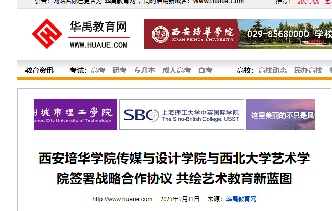 7月10日上午,西安培华学院传媒与设计学院与西北大学艺术学院全面合作签约仪式在西北大学长安校区举行。此次合作重点围绕硕士生导师培养、学科建设、科研创新等领域展开深度全面协作。