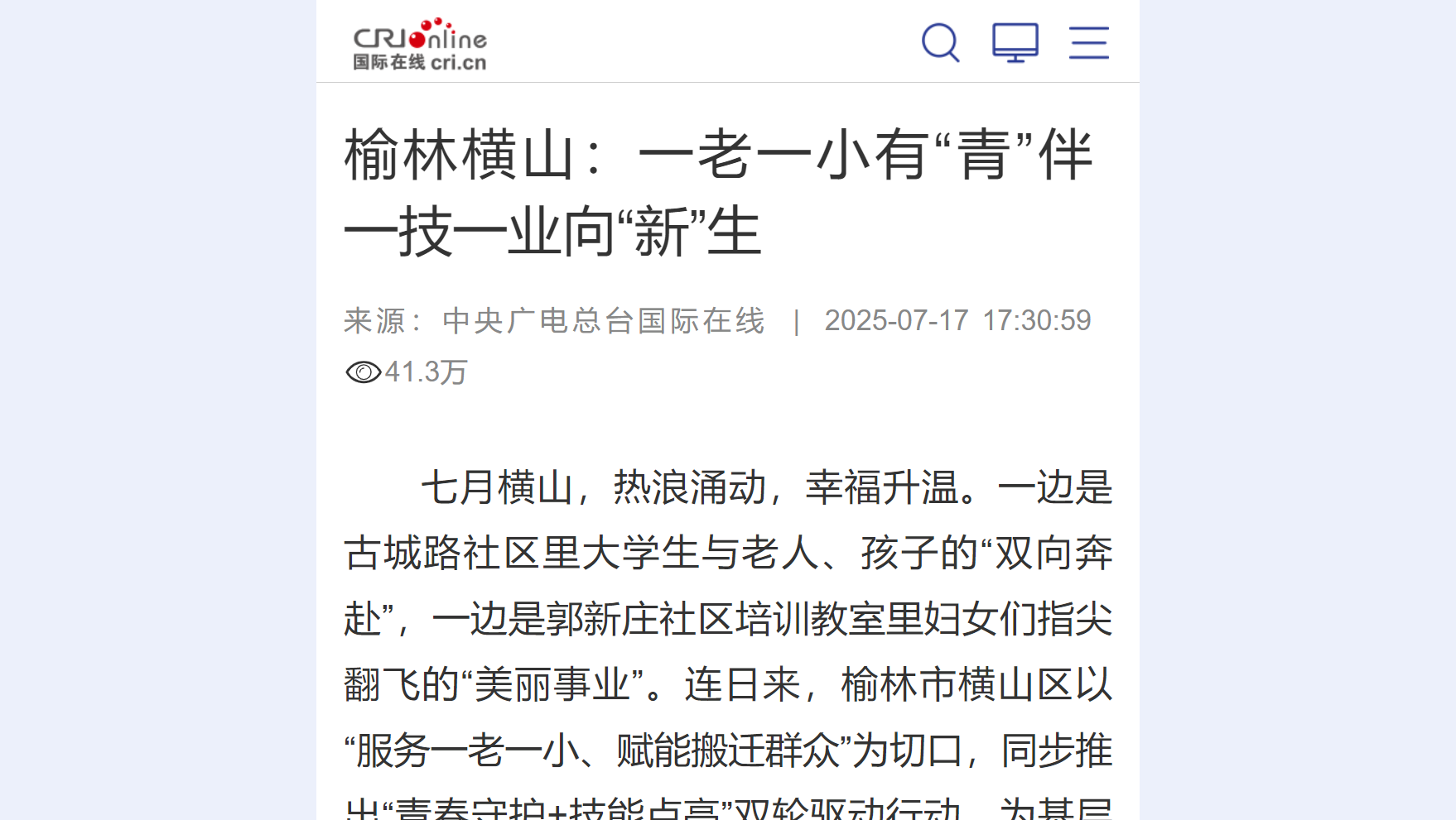 来源:https://sn.cri.cn/2025-07-17/d4497cd3-3a6f-cfcb-e6f8-6f00ba435242.html