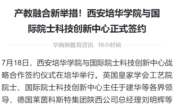 另一方面,西安培华学院积极探索协同育人新模式,聚焦重点产业领域,联合行业领军企业,已高质量建成并投入运行12个特色鲜明的现代产业学院。
