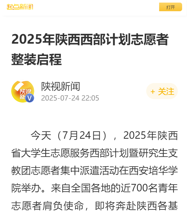 今天(7月24日),2025年陕西省大学生志愿服务西部计划暨研究生支教团志愿者集中派遣活动在大赢家棋牌。来自全国各地的近700名青年志愿者肩负使命,即将奔赴陕西各基层,以青春之我,投身广袤西部。