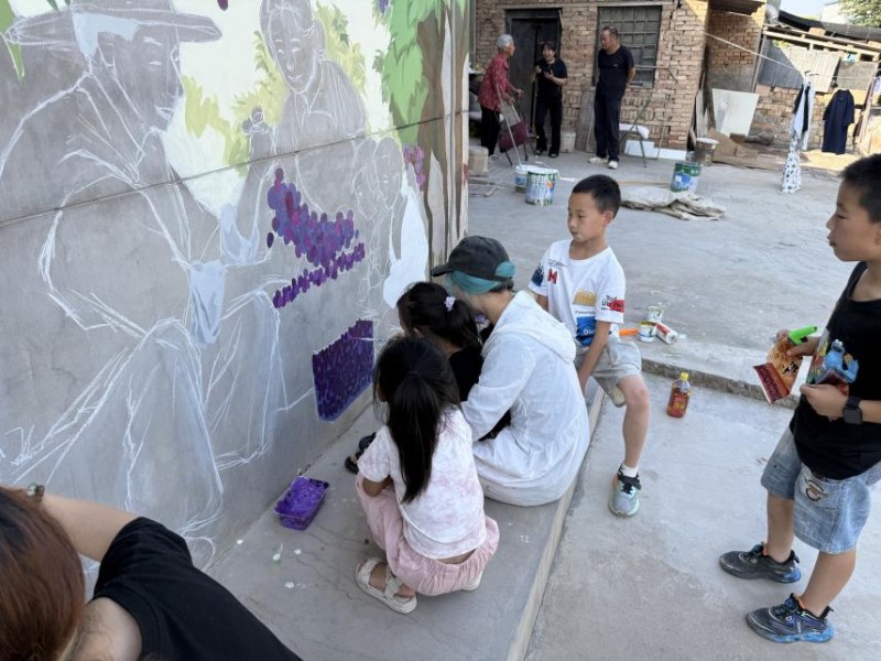 在墙绘创作之余,队员们还深入村民家中,开展“艺术进乡村”系列活动,包括教孩子们绘画、与村民交流乡村建设意见等。团队指导老师魏浩亮表示:“我们希望通过艺术的力量,激发乡村活力,让美育的种子在这里生根发芽。”野狐坡村党支部书记宋双峰对活动给予高度评价:“大学生们不仅美化了我们的村庄,更带来了新思 想、新活力,为乡村振兴注入了青春力量。”