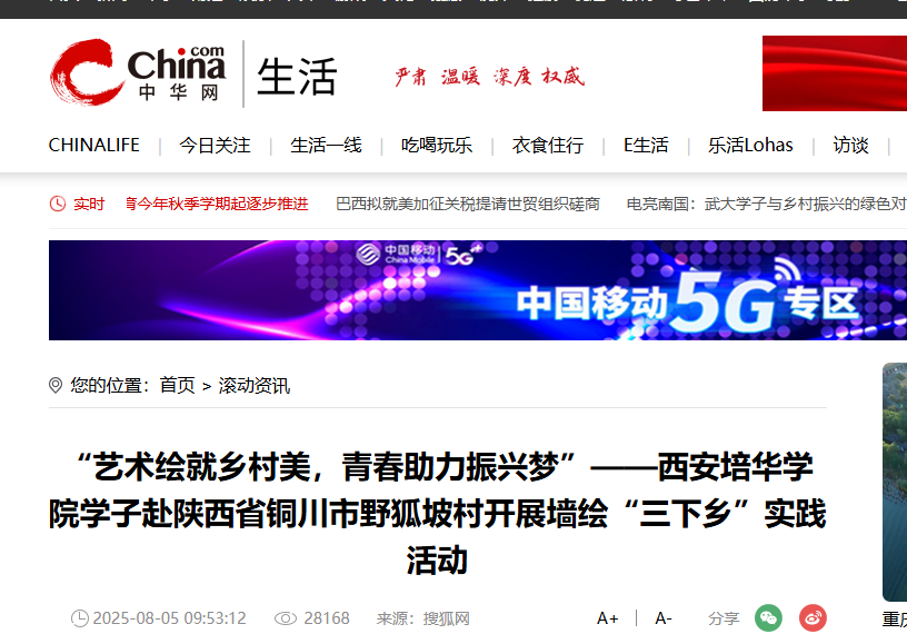 本次活动覆盖村内主干道、文化广场等核心区域,吸引了当地媒体和村民的广泛关注。此次“三下乡”墙绘实践活动,西安培华学院-传媒与设计学院2024级工艺美术专业学子以实际行动践行了“艺术服务人民”的初心,用青春和创意为野狐坡村描绘出乡村振兴的美丽画卷,展现了新时代青年的责任与担当。