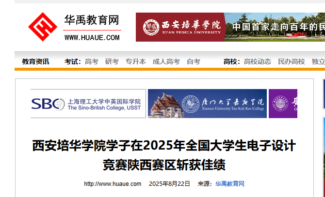 2025年7月30日至8月2日,由教育部高等教育司、工业和信息化部人事教育司共同主办,西安邮电大学承办的全国大学生电子设计竞赛陕西赛区比赛圆满落幕。西安培华学院智能科学与工程学院学子凭借扎实专业能力与团队协作精神,在全省62所院校、1149支参赛队伍中脱颖而出,荣获二等奖1项、三等奖5项,综合成绩位居同类院校前列。