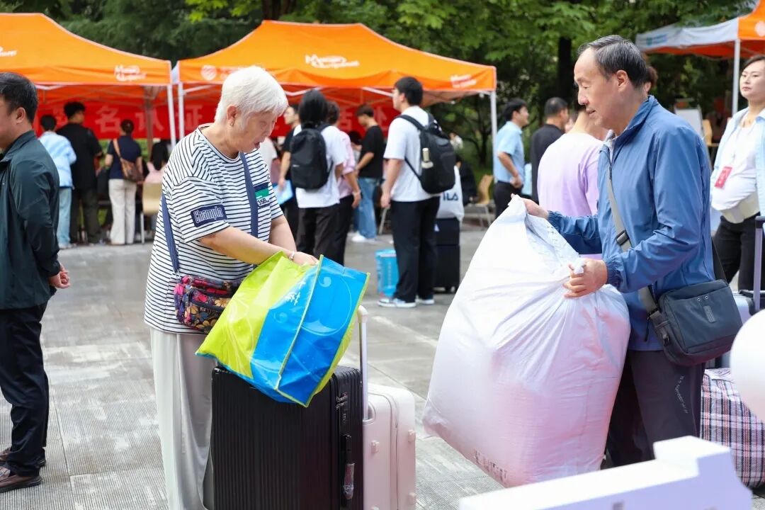 校园里随处可见家长陪伴新生的身影,他们细心帮着孩子提行李,沉甸甸的行囊里,装着的不仅是生活用品,更是家人浓浓的关爱与不舍。