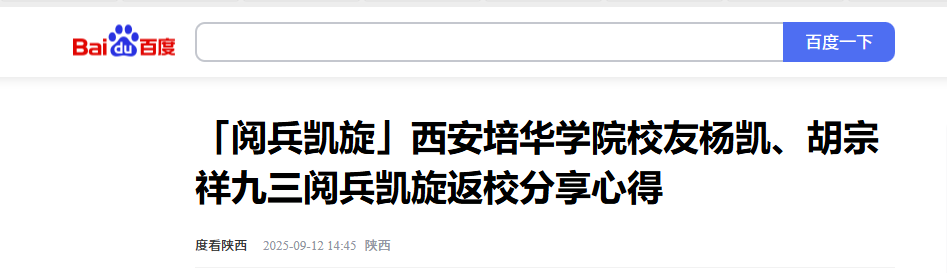 校友杨凯、胡宗祥载誉而归,培华学子以实际行动诠释家国担当。学校始终秉持着立德树人的根本任务,将家国情怀融入到教育的每一个环节,激励着一代又一代培华学子,将个人理想与国家命运紧密相连。未来,愿培华学子以榜样为炬,让青春在报国路上绽放光彩。
