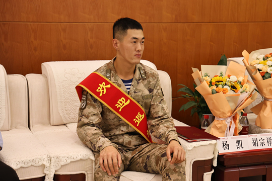 “欢迎学长回家”,体育馆内、恒友楼报告厅,欢呼声与鼓掌声此起彼伏。座谈会结束后,两位校友走进正在参训的新生连队,为新生带来了一场精彩的分列式动作演示,开展了一场特殊的爱国主义教育和国防安全教育课。他们勉励学弟学妹们要珍惜在校时光,刻苦学习,练好本领,在青春赛道上奋力奔跑,书写华丽篇章。