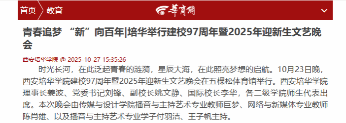 本次晚会不仅是一场视听盛宴,更是一堂浸润家国情怀的“大思政课”。它以艺术为笔,勾勒出培华九十七载春秋的壮阔长卷。帷幕虽落,欢声笑语已凝为永恒的精神印记;征程再启,今夜感动正生根为奋进的力量,愿每一位培华学子带着这份荣耀与使命,在培华迈向百年的新征程上,继续书写“教育强国,培华有为”的壮丽篇章。