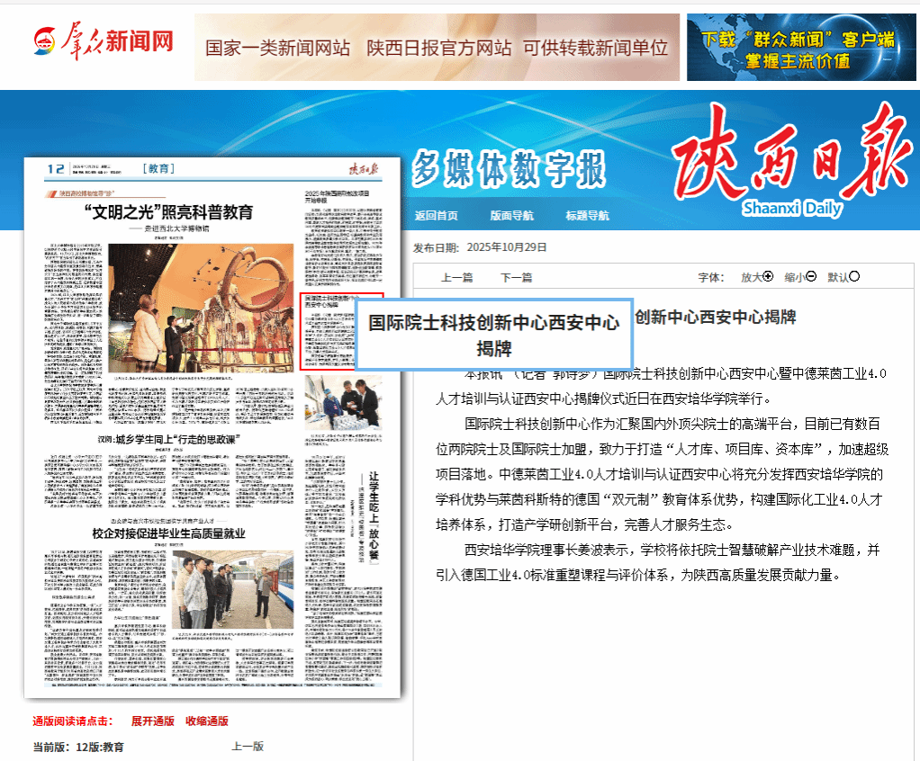 西安培华学院理事长姜波表示,学校将依托院士智慧破解产业技术难题,并引入德国工业4.0标准重塑课程与评价体系,为陕西高质量发展贡献力量。