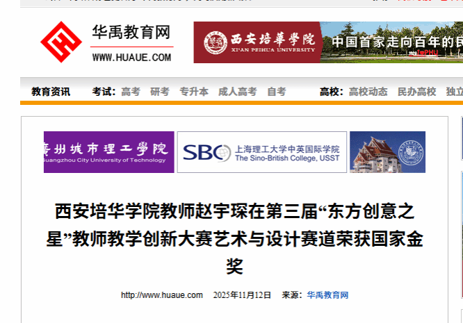 11月7日-9日,第三届“东方创意之星”教师教学创新大赛全国赛作品答辩及评审会在江苏大学圆满落幕,来自全国24个省区市的111家单位,共计150位参赛者参加了大赛。西安培华学院广播电视编导专业教师赵宇琛的纪录片作品《乡野新声》凭借“真实项目”进课堂等设计,在艺术与设计赛道荣获国家金奖。