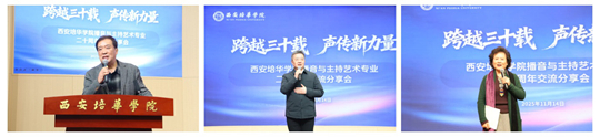 陕西广播电视台播音指导、陕西省第九届\第十届政协委员陈爱美,陕西广播电视台播音指导、中国播音主持“金话筒”奖获得者包志坚,西安广播电视台原副台长、二级教授、播音指导严一宁,西安培华学院理事长姜波,党委副书记、副校长姚文静,传媒与设计学院、女子学院、党委宣传部相关负责人及播音与主持艺术专业历届校友、全体专任教师、学生代表出席活动。传媒与设计学院教师贾登银主持活动。